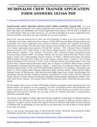 Application Form Answer Example For Crew Trainer At Mcdonald's / Answer To Crew Trainer Evaluation Pdf Download Induced Info - How long have you worked at mcdonald's?